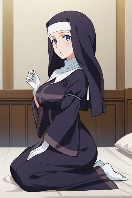 我花了一些时间才让这个Lora生成出Orsola的修女装扮,但没有面纱,同时又能生成出带有面纱且头发被遮盖的修女形象。