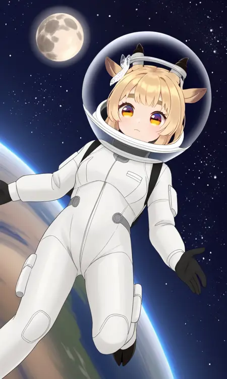 kazamikapra, 1girl, blonde, goat horns, goat ears, twintails, head decoration,