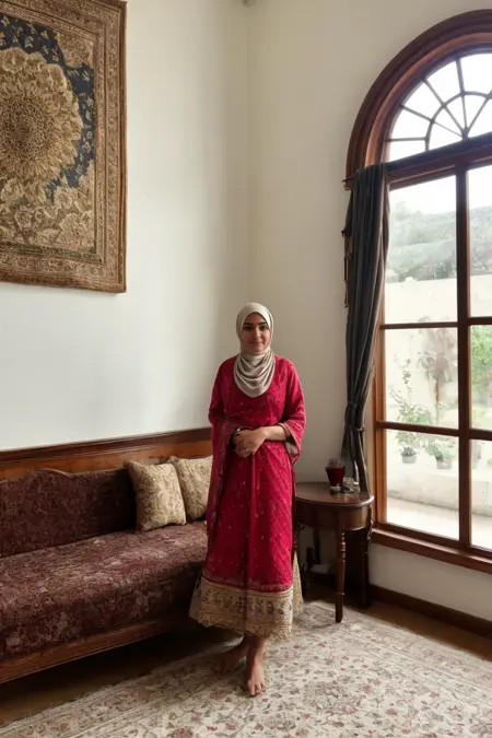 パキスタン系英国家族のリビングを描くためのLoRA。両文化のミックスを表現し、アラブ風のスタイルも加える。