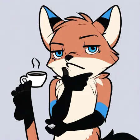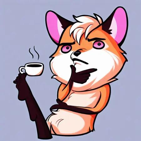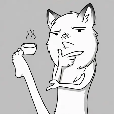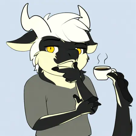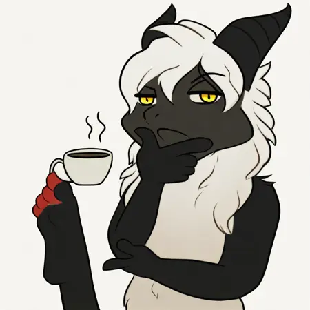 mikus-concept, thinking pose, hand on chin, foot holding cup