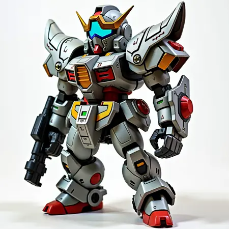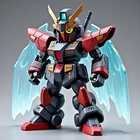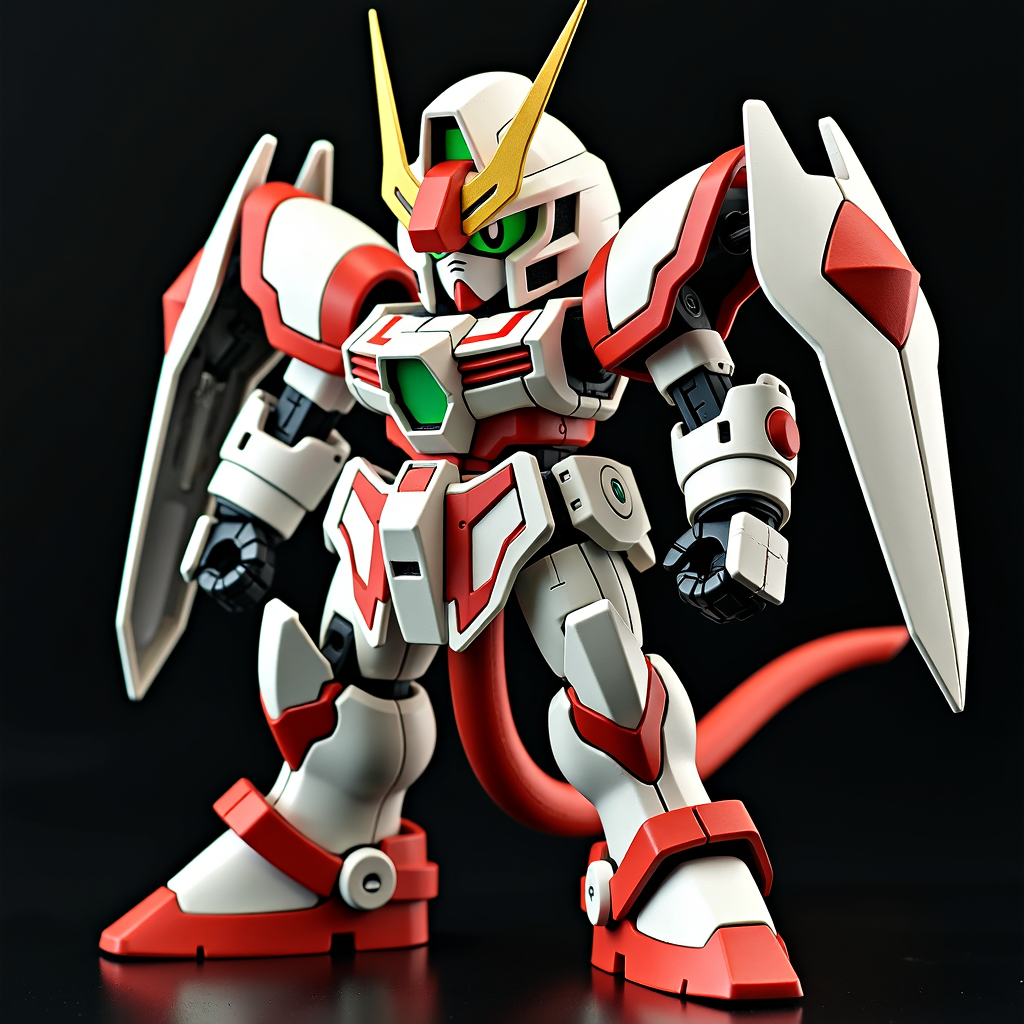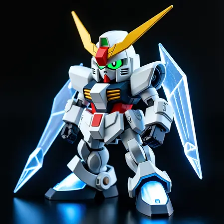 使用此LORA,你可以生成SD高达风格的图像。但由于训练强度较高,建议将权重设置在0.4左右以增加灵活性。后半部分无提示的图像使用Redux生成。