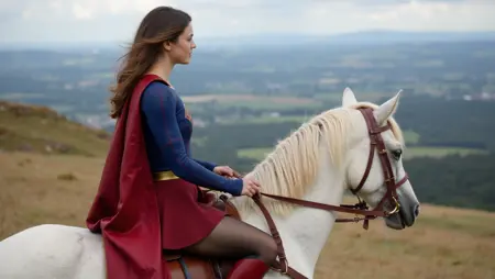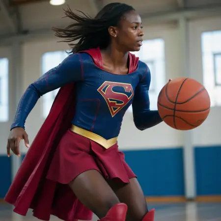 Trigger words (must include in prompt): wearing a blue sg shirt with a 'S' emblem and red stitching lines, a red sg cape, a golden sg belt, a red sg skirt, black sg tights, and red sg boots