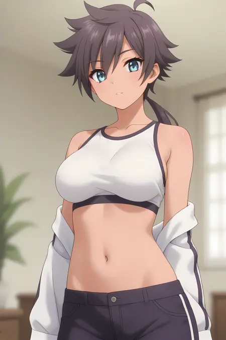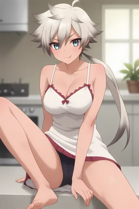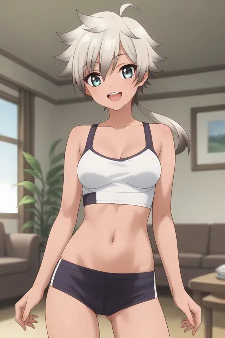 スパイクヘア、カラータイプ、ショートヘア、ロー ポニーテール、グレーの瞳、タン