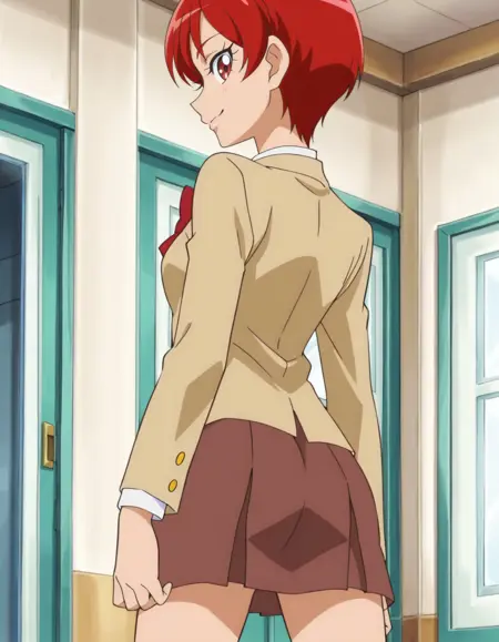 score_9, score_8_up, score_7_up, 애니메이션 스크린캡, 솔로, 1소녀, kenjouakira, 학교 유니폼, 갈색 치마, 갈색 블레이저, 재킷, 리본, lora:kenjouakira:0.8