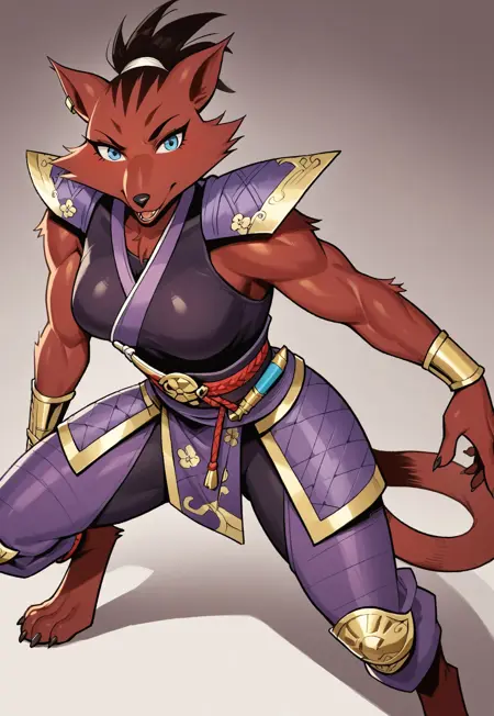 toned, Japanese topknot, Ninja, female furry, armor, Ninjara