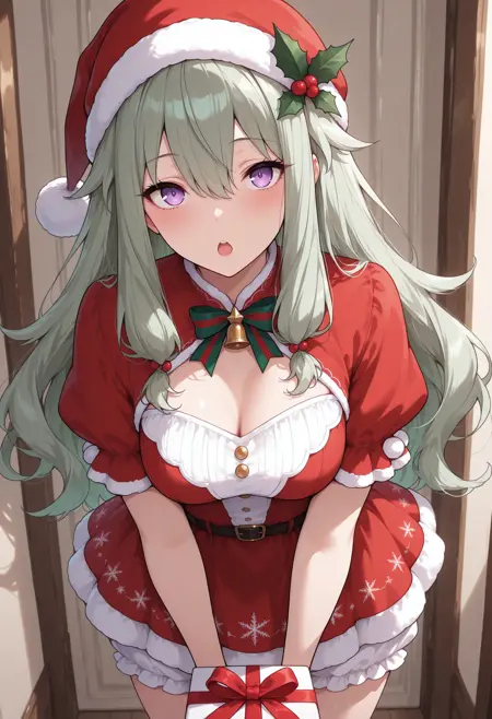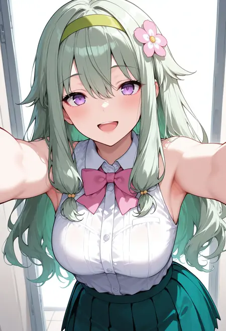 nenechan, long hair, green hair, purple eyes, bangs, hair between eyes
