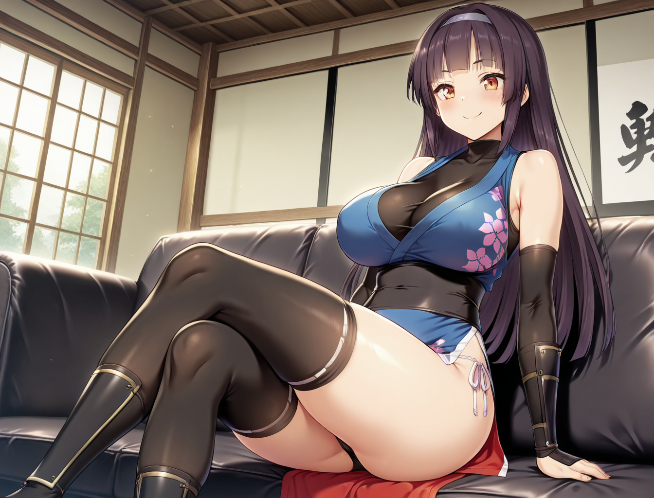메이코 닌자: Meiko_Ninja, 파란색 닌자 복장, 검은색 허벅지 스타킹