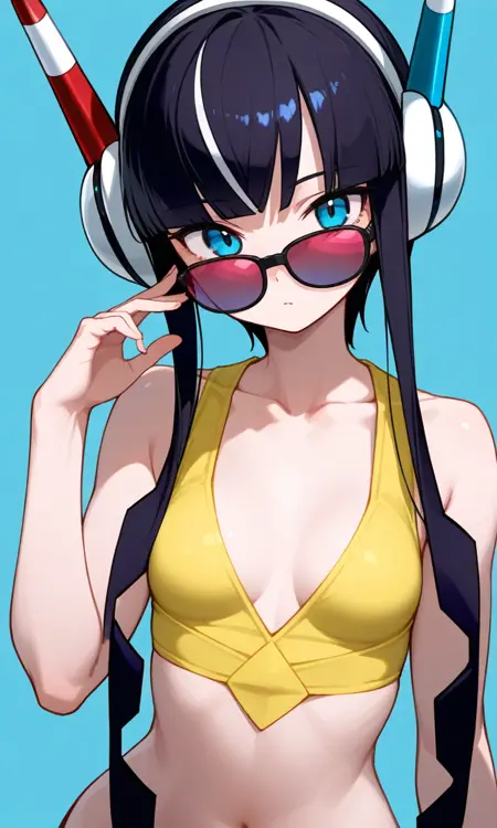 예시: "Elesa, BaW, 검은 스트랩이 달린 노란색 비키니, 수영장 배경, 고선명, 빛나는 반사"
