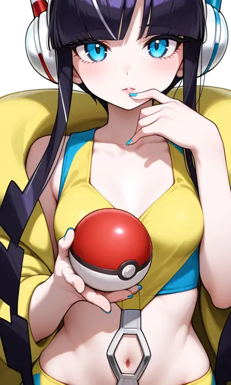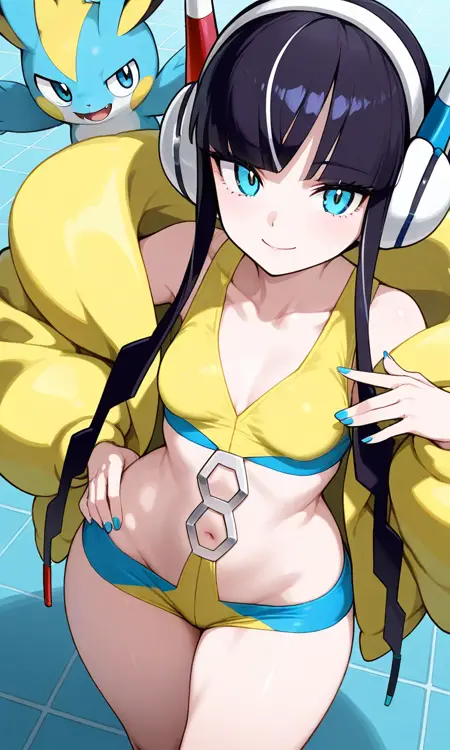 Elesa, Pokemon, (버전), 창백한 피부, 파란 눈, 마른 체형, 날씬한 체격, 가늘고 긴 허리, 넓은 엉덩이, 작은 가슴, 적은 근육