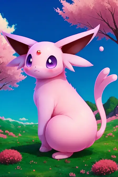 lora:Espeon\_by\_Spooklly\_V007:1, espeon, cat , pokemon, pink pokemon, purple eyes, tail,