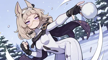 외모: meredithil, 애니메이션, 마른 몸매, 1소녀, 혼자, 앞머리, 땋은 머리, 보라색 눈, 동물 귀
