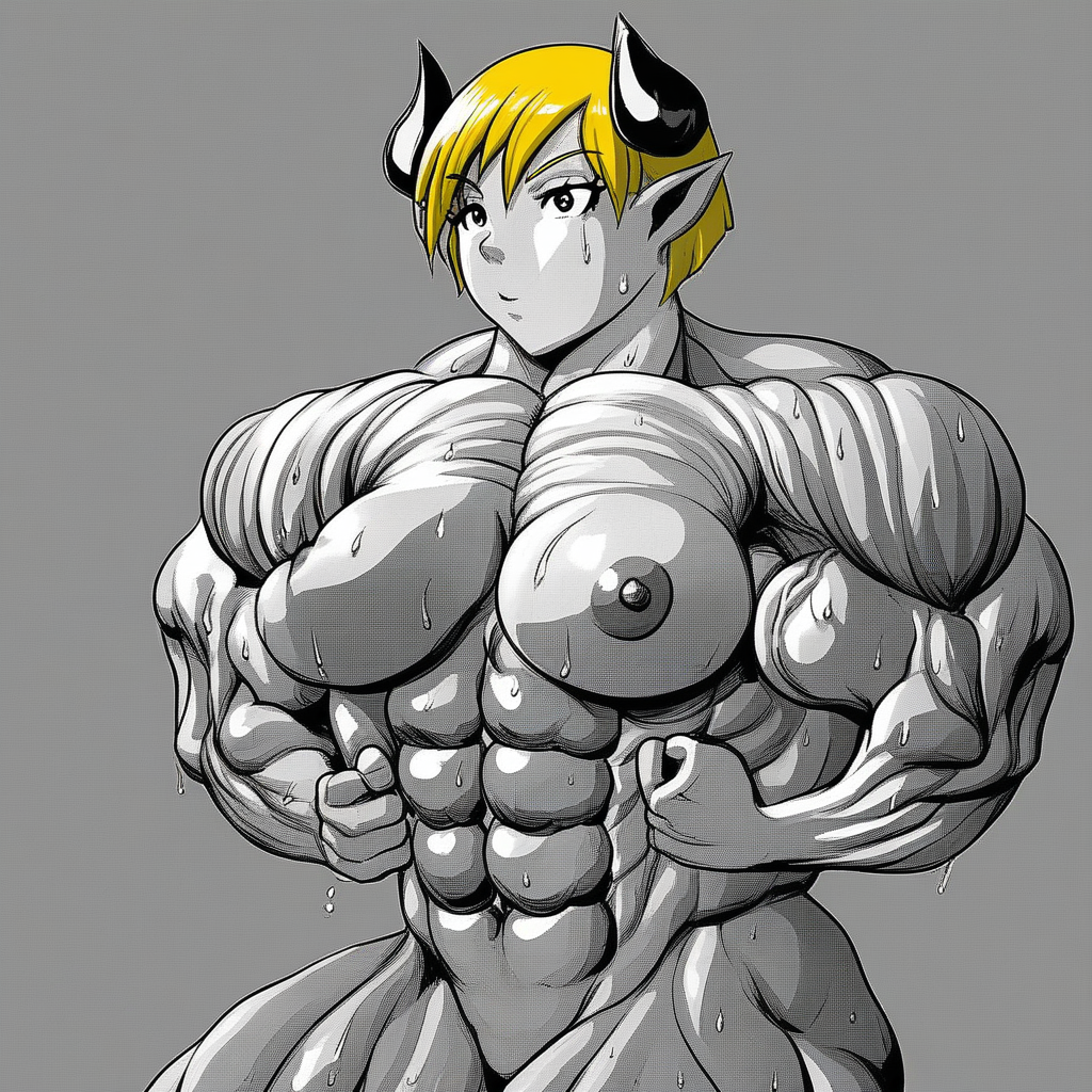 테스트. 더 일반적인 각진 겉보기의 근육과 찢어지고 선명한 몸을 위해 일부 근육 아티스트를 혼합한 스타일 LoRA.