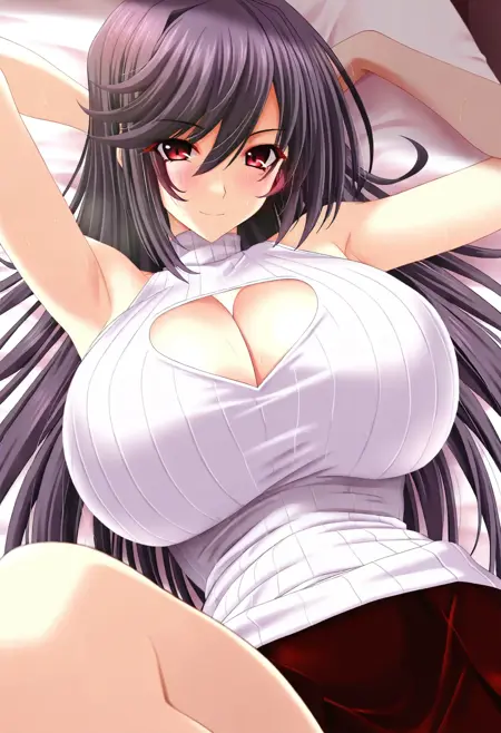 1girl, 长发, 黑发, 红眼, 巨乳,