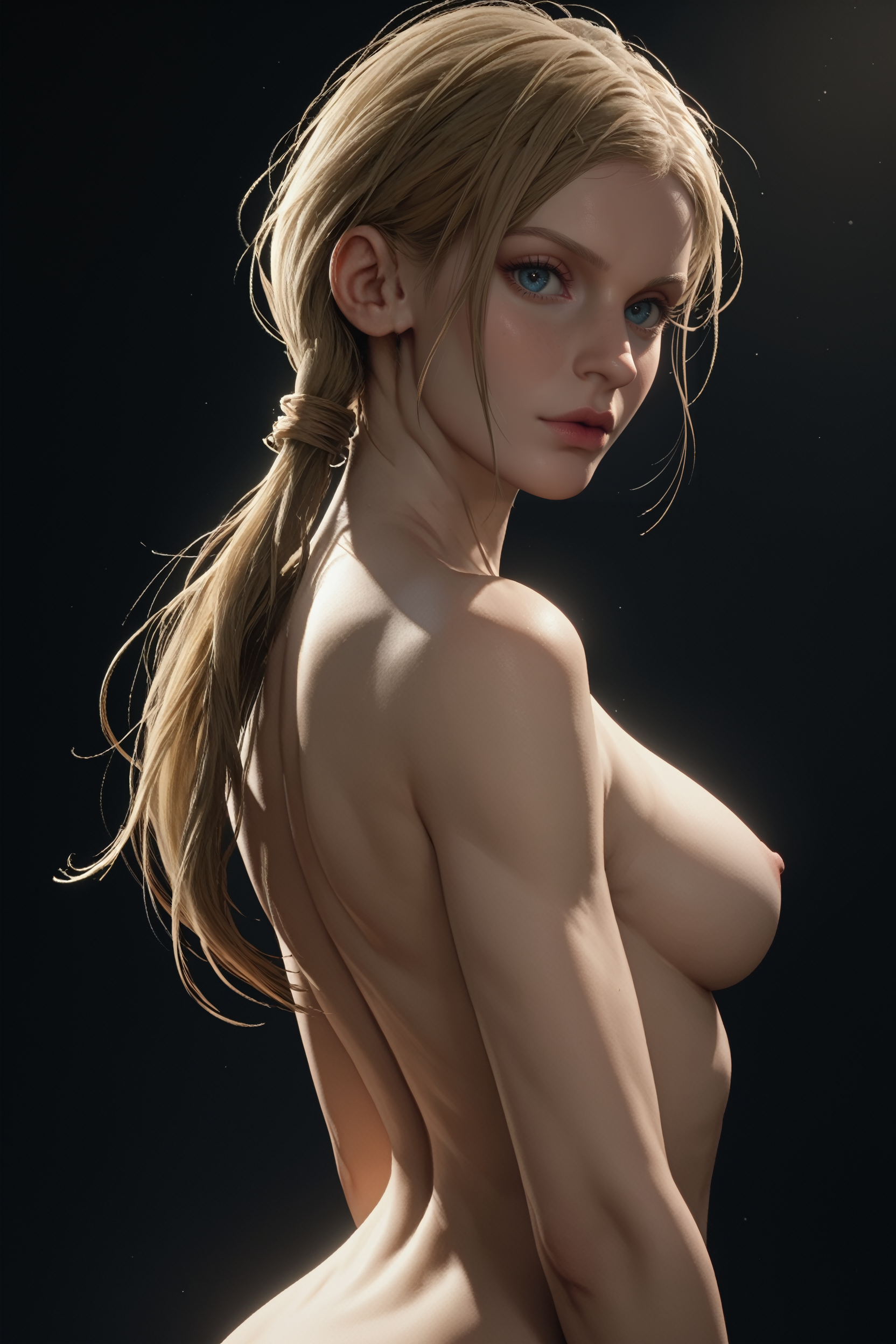 REAnnette, 1girl, blonde hair, blue eyes, long hair, ponytail, hair over shoulder