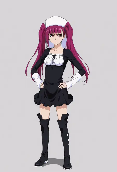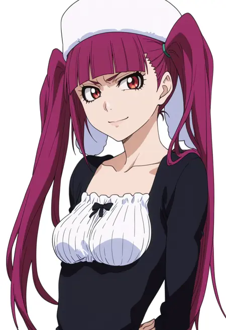 Basic prompts : 1girl, rirukadokugamine, purple hair, twintails, long hair, red eyes