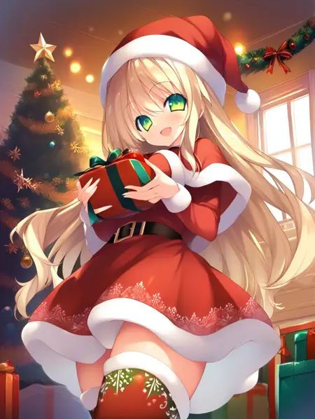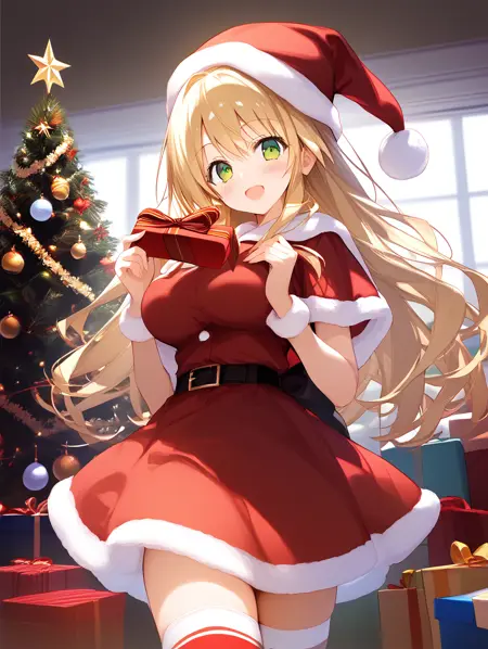1girl, green eyes, blonde hair, hat, open mouth, long hair, solo, hand on own hip, long sleeves, smile, looking at viewer, hair intakes, school uniform, juliet sleeves, blush, kadoya yaeka,white thighhighs,