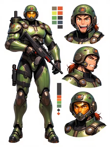 Character Design Sheet (HELPER) (3-PERSPECTIVES)+(COLOR PALETTE) - Z-IMAGE TURBO | Illustrious XL | FLUX | XL PONY | SD 1.5 - by YeiyeiArt