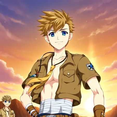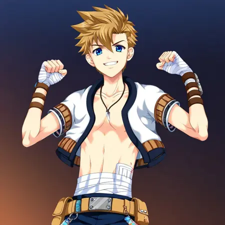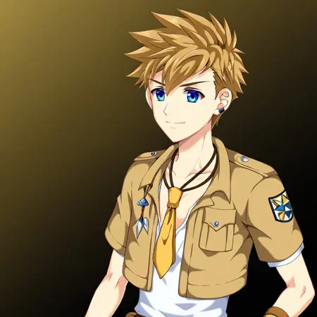 これは小説ゲーム『Camp Buddy』に登場するキャラクター、コナー・ブルーフィンです。彼の他の画像が見つからないため、これは公式画像ではありません。装飾バージョンが生成時に過剰に強調される場合は、プロンプトに'young'または'youthful'を追加してください。