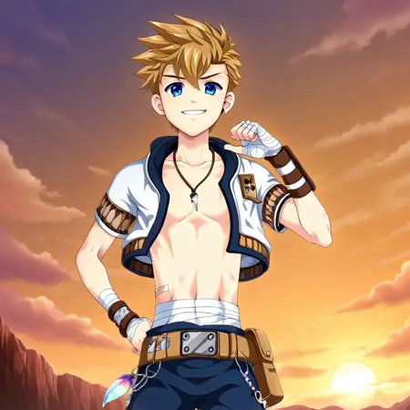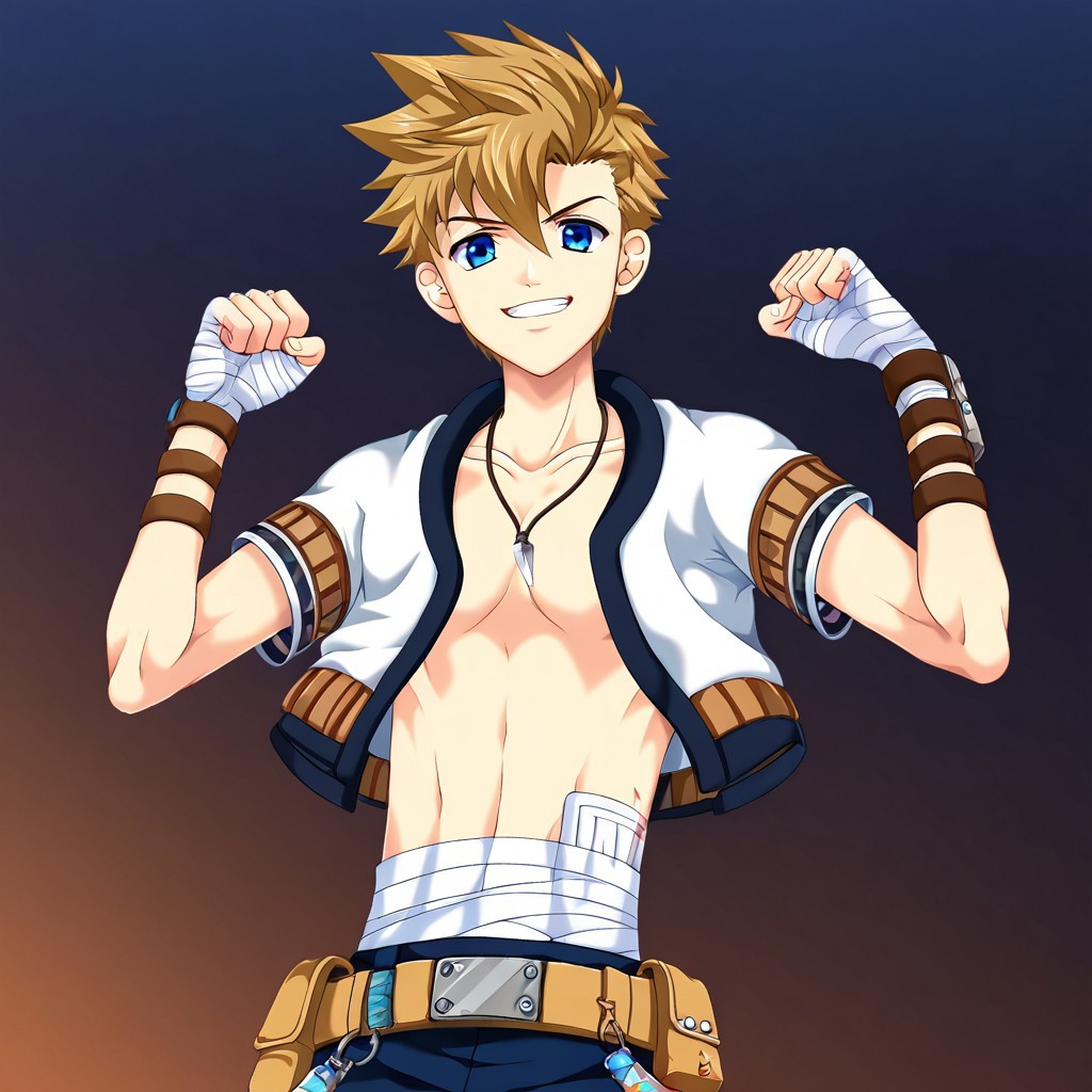 这是康纳·布卢芬,来自小说游戏《Camp Buddy》的角色。由于找不到更多他的图像,这不是官方图片。如果华丽版本生成时效果过强,请在提示中加入“young”或“youthful”。