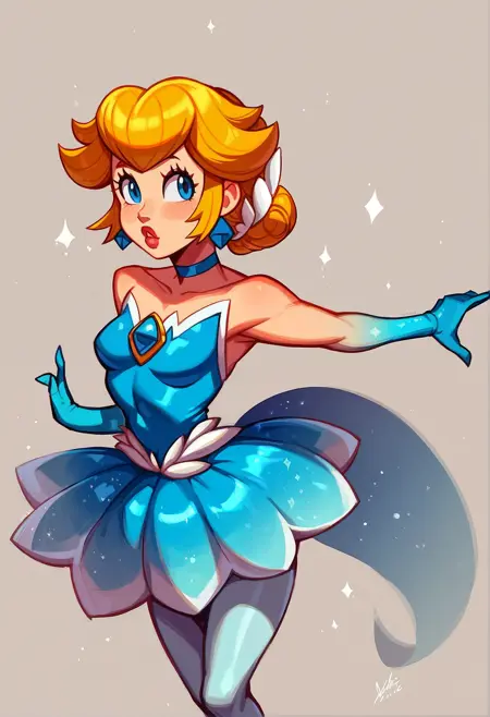 프린세스 피치 쇼타임의 피규어 스케이터 피치. 무게 0.7~0.9에서 가장 잘 작동하며, 더 낮은 무게를 사용하면 옷감 LoRA처럼 사용할 수 있습니다.