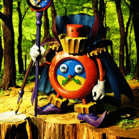 プロンプト: timewizard, gloves, white gloves, tree, staff