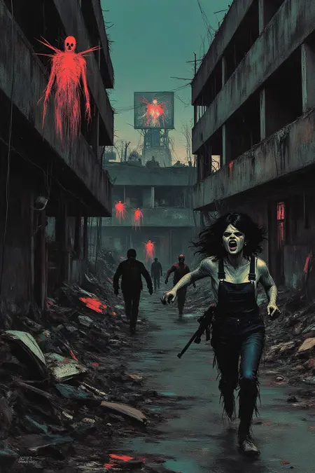 이것은 사실 이전 버전으로, 당시에는 너무 강한 "녹는 얼굴" 효과가 발생한다고 생각했습니다. 그러나 추가 테스트 후 일부 프롬프트에는 좋은 결과를 산출한다는 것을 발견했기 때문에, 여러분의 즐거움을 위해 공개하기로 결정했습니다. 이 버전은 Variant 1보다 공포 테마의 이미지에 더 적합할 것입니다.