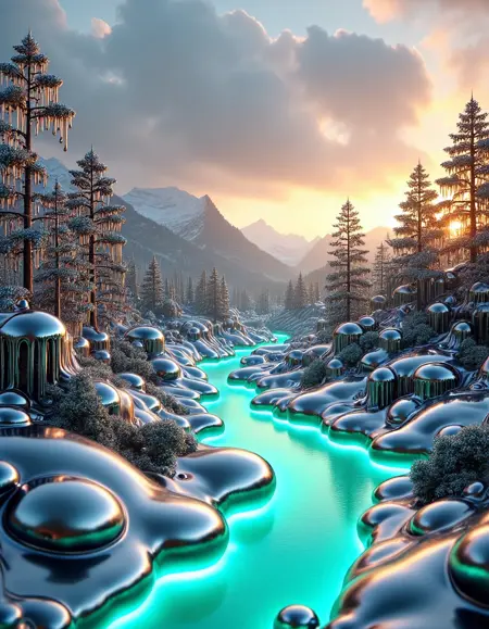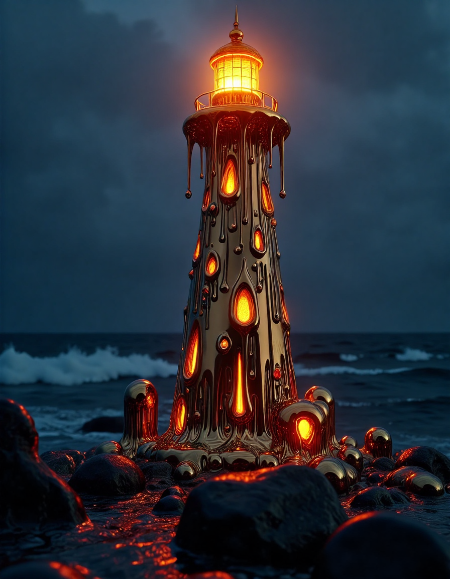 This model, trained on a custom dataset of molten, drippy liquid metal textures, applies a surreal and futuristic aesthetic to any subject or scene. It transforms objects, environments into creations that appear crafted from reflective, molten metal with cascading droplet-like patterns. The resulting images blend vibrant color schemes with heavy, metallic textures, creating a distinctive style that emphasizes fluidity, otherworldly beauty, and a unique interplay between organic and industrial elements. Perfect for conceptual art, sci-fi themes, or surreal visual experiments.