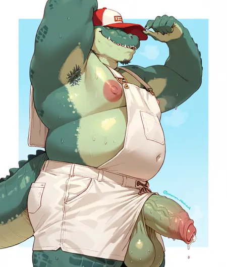 louis, dinosaur, tyrannosaurus rex, bege body, bege skin, chubby