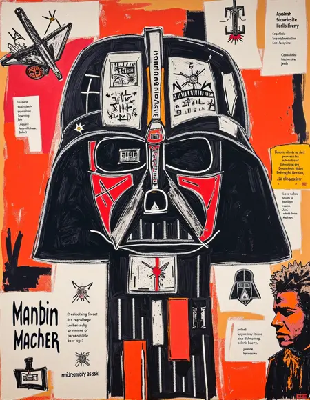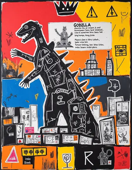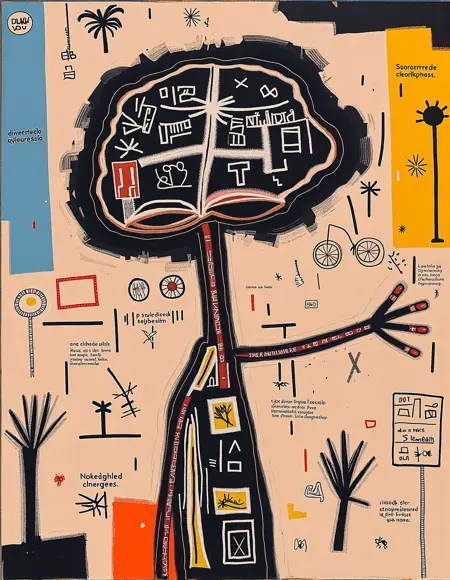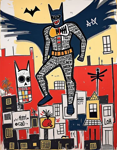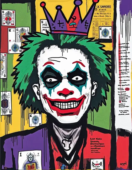 His style can be described as raw, vibrant, and highly expressive, combining elements of graffiti, street art, and abstraction. Basquiat's paintings often featured bold, energetic brushwork, vivid colors, and a distinctive use of symbols, text, and cultural references.