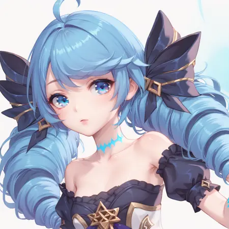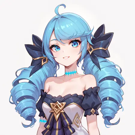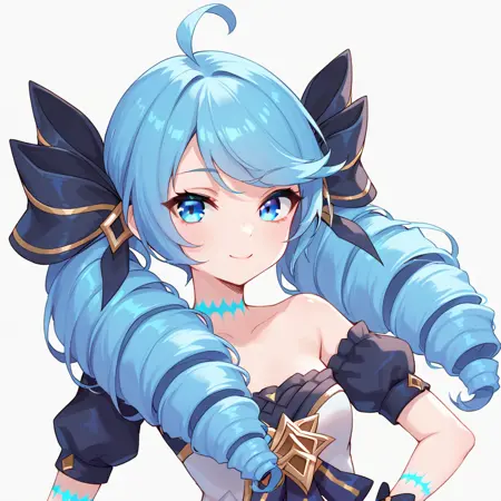 gwenlol, blue hair, blue eyes, twin drills, ahoge