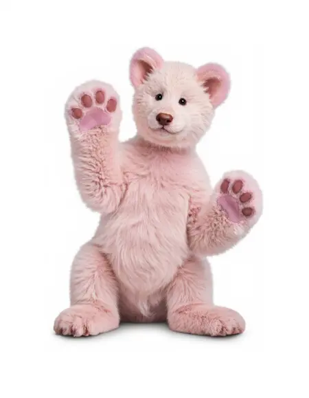 一张以 telus-ads 风格呈现的小薮猫,有着大耳朵和大鼻子,站在白色背景上的可爱照片