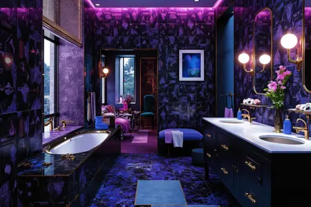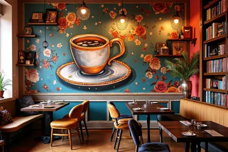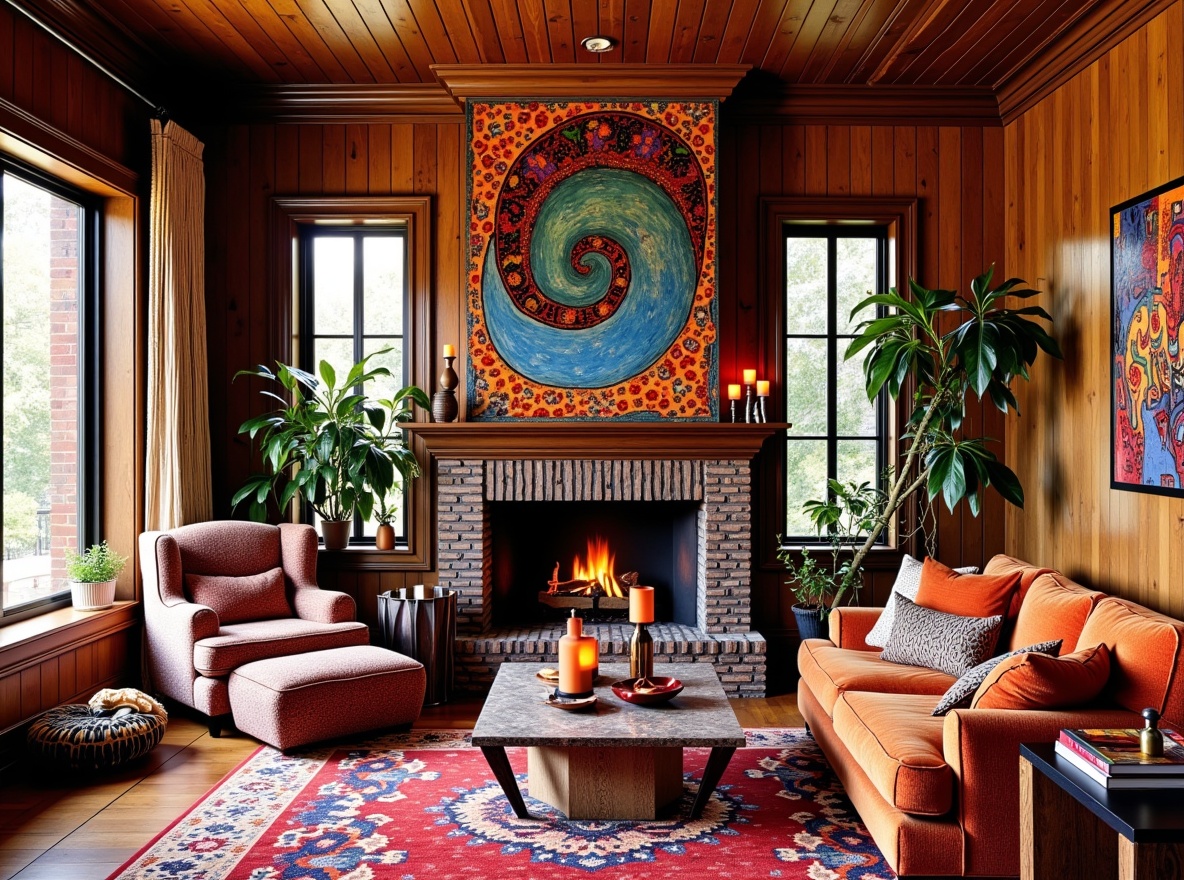 1980年代後半から1990年代半ばにかけて人気だった、エスニックでエクリクな温かいパレットを強調したインテリアスタイル。バスルーム、寝室、リビング、ショップに適しています。(当時の有名な木版画風のクリップアートやグラフィックデザインなど、このスタイルに関連するanythingについて一切知識がありません。)
