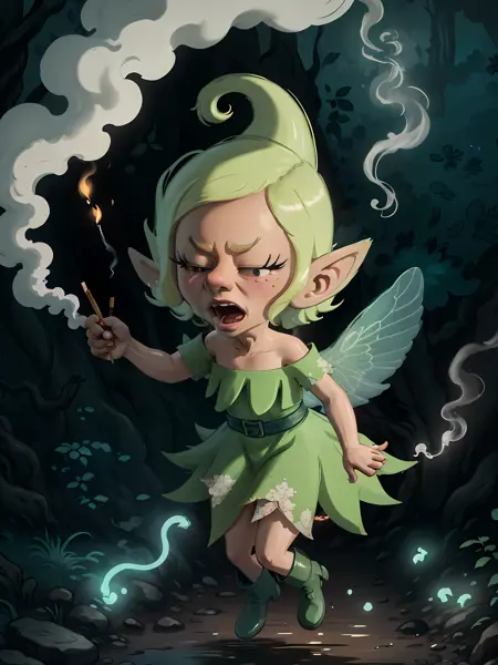 物品/姿势:持魔杖、闪光、持香烟、烟雾、香烟有用的提示词: