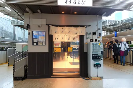 かつて東海道新幹線18・19番線ホームの14両目あたりにあったそば屋の懐かしい風景を学習させました。