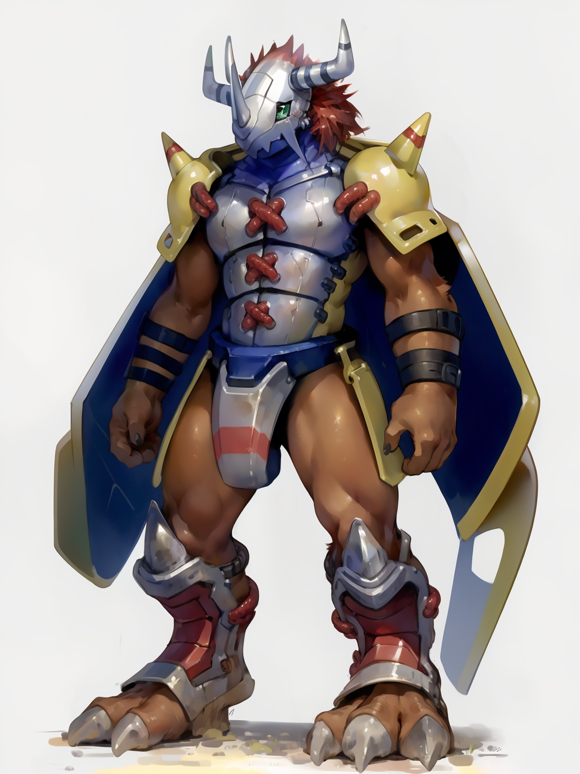 Wargreymon's very complicated with too many parts, so it's almost impossible to generate a perfect armored image without inpainting or controlnet. Nude images will be better.