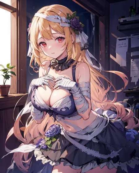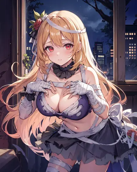 全套装束: mummy costume, bandages, bandaged head, frilled choker, frilled skirt