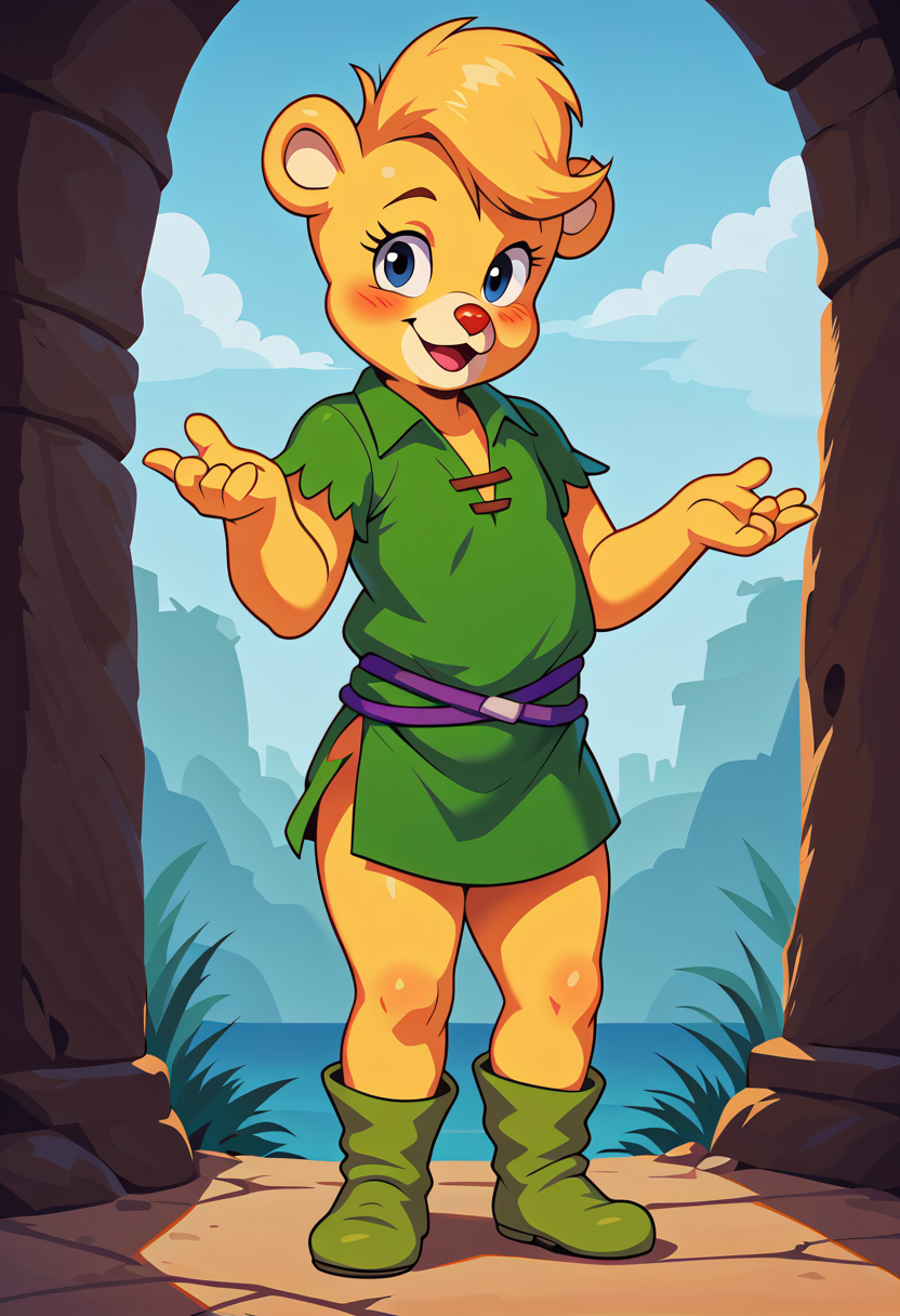 Sunni, Gummi Bears, bear, dark blue eyes, yellow skin, yellow fur,