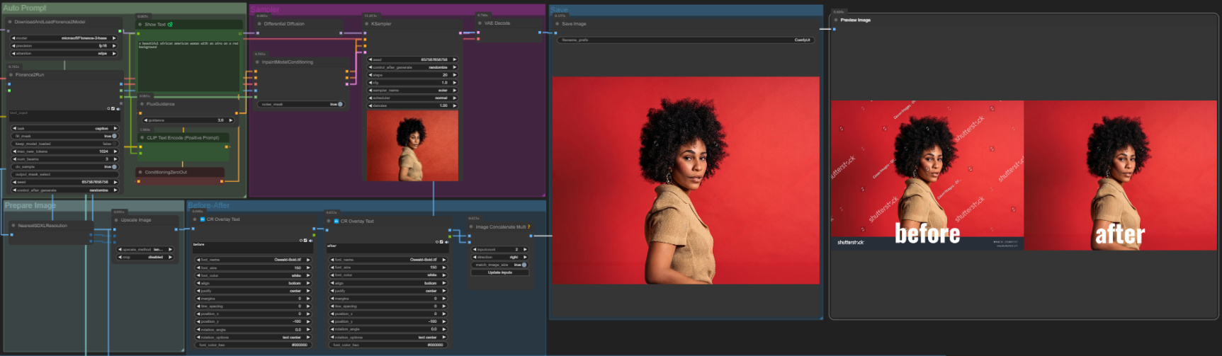 The workflow can automatically remove watermarks from 'Shutterstock.'