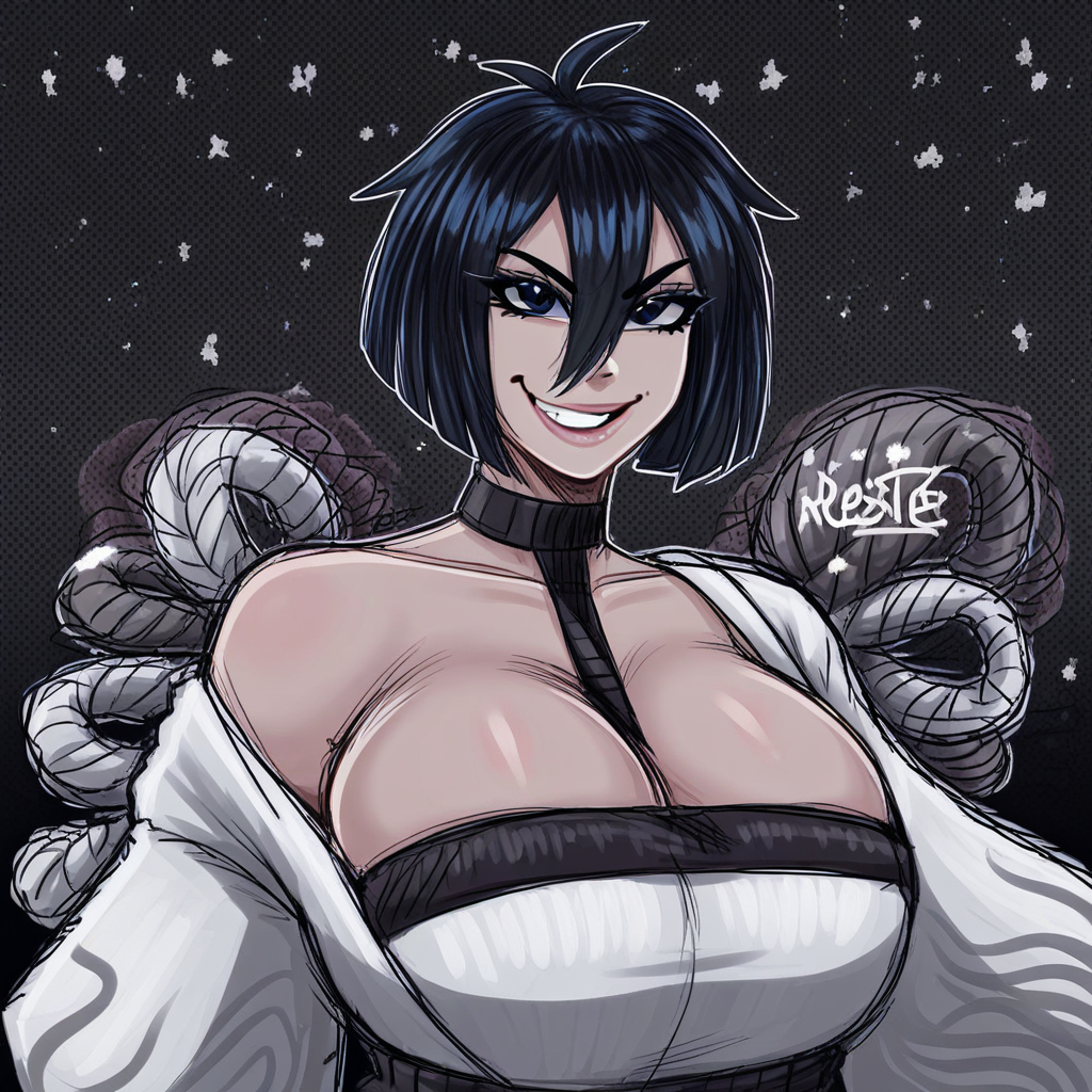 오니 뿔, 검은 눈, 검은 머리 등의 키워드를 사용하세요.
