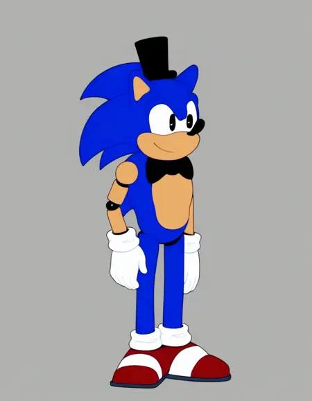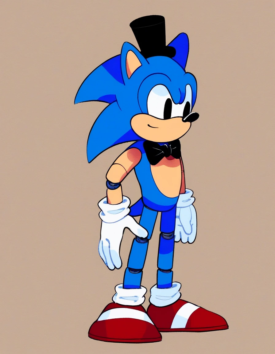 | 训练词汇 | Clone_SonicFNF, gloves, 1boy, hat, bow, animal ears, blue hair, shoes, socks, white gloves, bowtie, black eyes, black headwear, black bow, white socks, red footwear, furry, mini hat, black bowtie, top hat, furry male, body fur, mini top hat, animal nose, blue fur, sonic the hedgehog. robot, animatronic, robot joints已复制! |