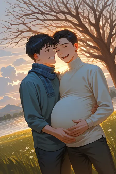 男男情侣焦点,DaPREGNANT,1pregnant male,2boys