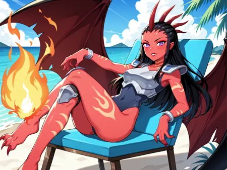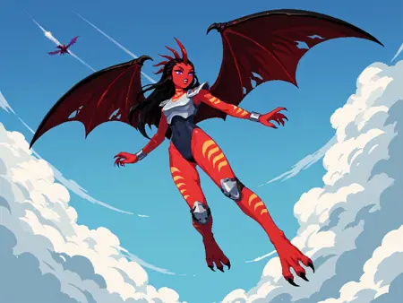 不知为何,我连续做了三个以紫色眼睛为主的角色LoRA。我也不知道为什么会这样。每个角色在制作LoRA前,我其实都不太确定她们的眼睛颜色。不过,这个LoRA的图片数量比前两个少很多,因为我对它兴趣一般。它不是个差的LoRA,只是感觉平平无奇,而瞳孔不清晰或角形状不准确的不一致性让我有点困扰。(另外,虽然我尝试让“from behind”效果更好,但当角色背对时,翅膀仍常常从胸部而不是背部生出。其实对带翅膀的LoRA来说这挺常见的,但看起来还是有点怪异 lol...)
