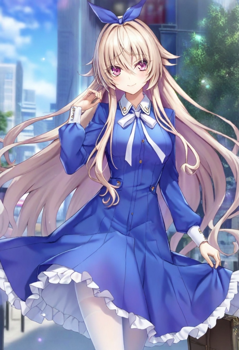 금발 머리, 매우 긴 머리, 분홍색 눈,