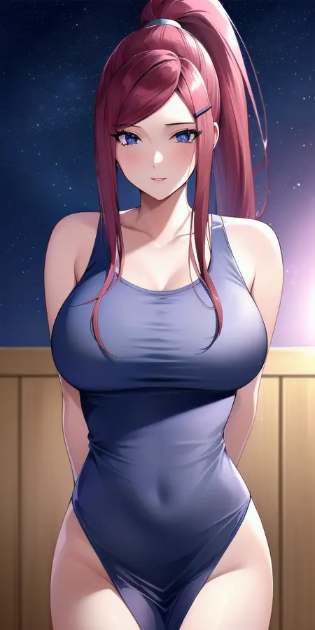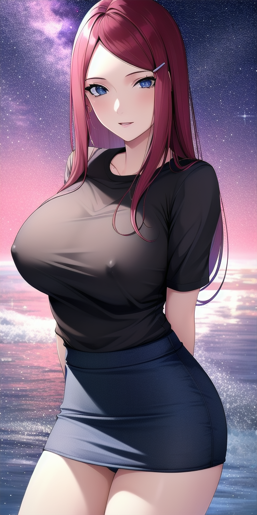 highres, 1girl Uzumaki_Kushina, huge_breasts, hair_ornament, blush, lora:Uzumaki_Kushina:.4