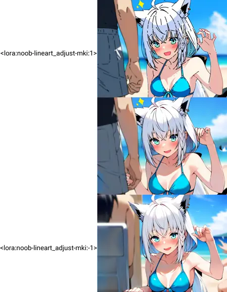this LORA on the Illustrious-XLv0.1/NoobAI-XL (NAI-XL) training standard, it is recommended to keep the weights between -2 and +2 (usually). As shown in the figure, the function of this LoRA is to deepen/lighten the line art in the image. Different effects can be achieved by using positive or negative weights.