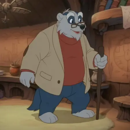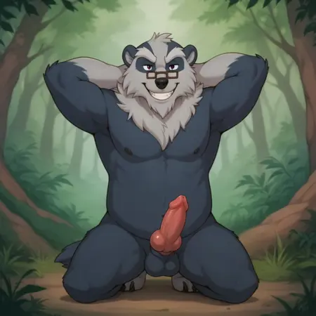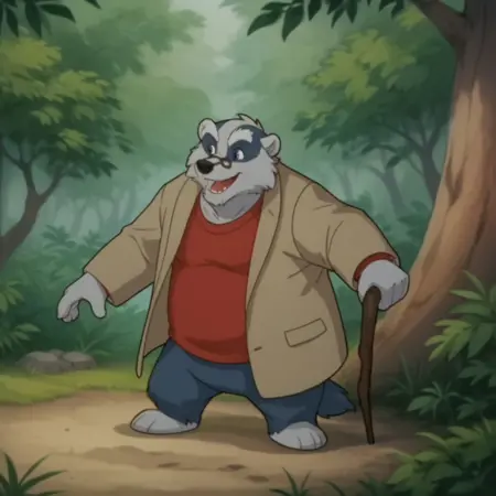 Corneliusouaf, semi-anthro, male, badger, grey fur, two-tone fur, red shirt, glasses, tan jacket,
