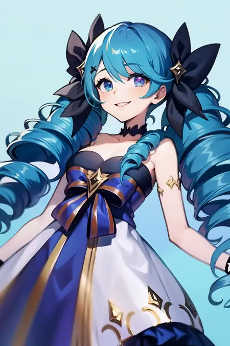 tag:long hair, twintails,twin drills, blue hair, blue eyes,star-shaped pupils,