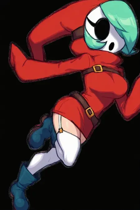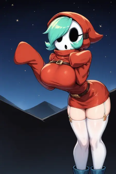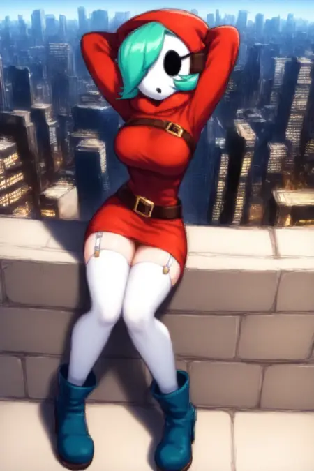 Helpful: Shygal, hood, long hood, skirt, belt, black eyes, short dress, thighhighs, boots, garter belt, garter straps,