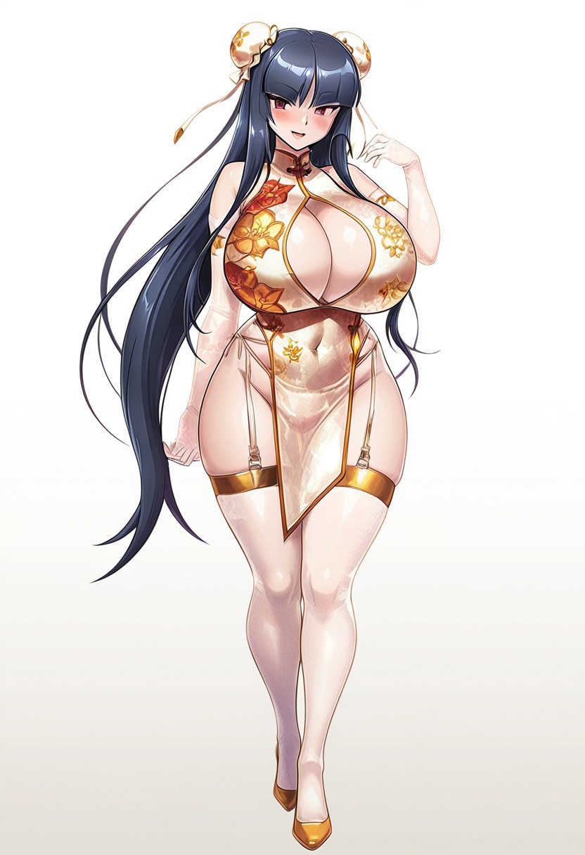 TAGS : china dress,chinese clothes,cleavage cutout,garter straps,see-through,elbow gloves,thighhighs,bare shoulders,ribbon,double bun, bun cover,