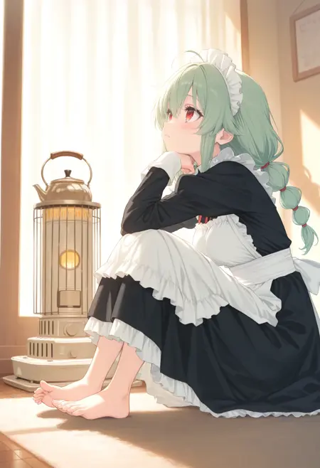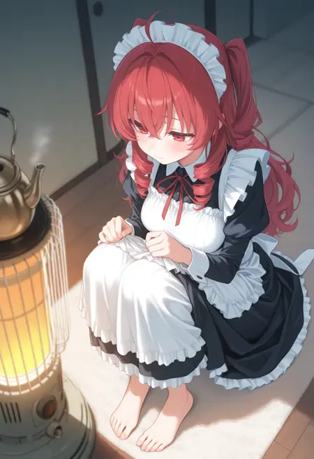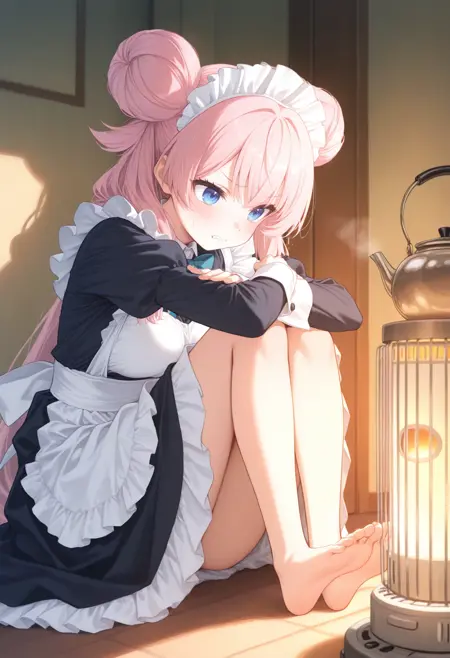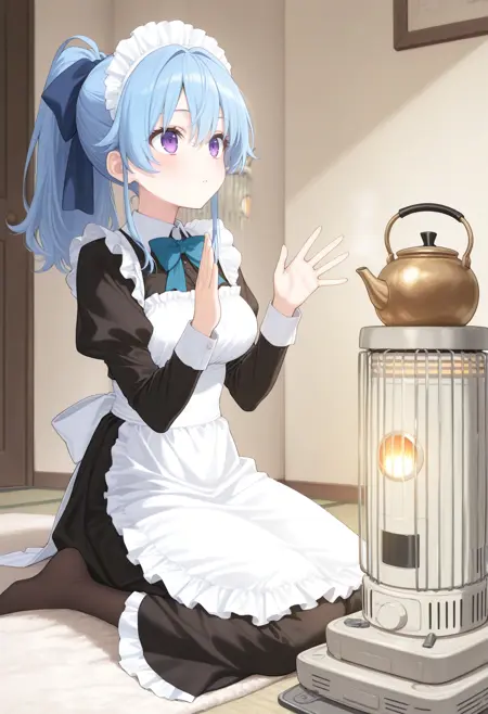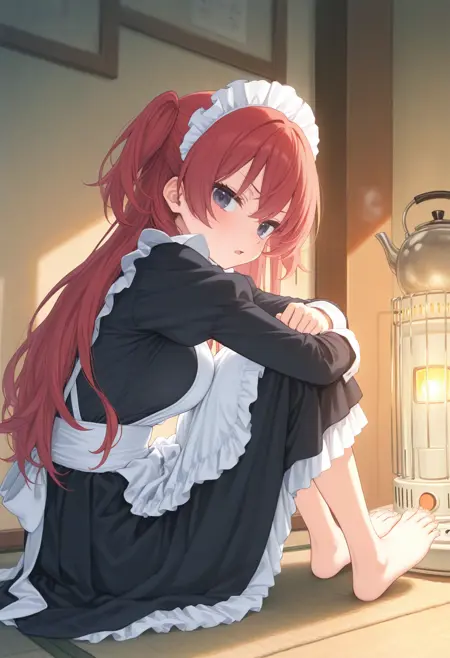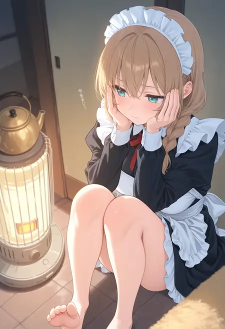 石油を燃焼させて暖を取るストーブで暖まらせるLoRAです。
